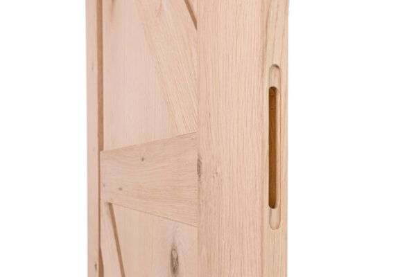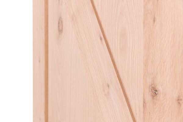 Deze deuren zijn van massief hout, opgebouwd middels een vurenhouten binnenwerk en een gefineerde afwerking van eikenhout. Door deze opbouw wordt voorkomen dat de deuren kunnen kromtrekken en dus extra stabiel zijn.