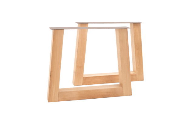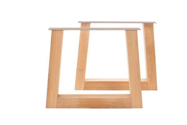 Set van 2 houten Trapezium-poten met een kokermaat van 100x100mm. Deze set wordt geleverd inclusief schroeven + bitje voor de bevestiging onder het tafelblad.