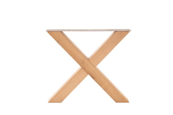 Set van 2 houten X-poten met een kokermaat van 100x100mm. Deze set wordt geleverd inclusief schroeven + bitje voor de bevestiging onder het tafelblad.